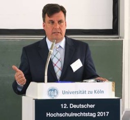 Professor Dr. Christian von Coelln aus dem Kreis der Veranstalter freute sich in seiner Begrüßung, dass man offensichtlich ein sehr aktuelles Thema ausgesucht habe. Mehr als 120 Anmeldungen seien dafür ein starkes Zeichen. Das bestätigte auch Prorektor Prof. Dr. Stefan Herzig, der sich als Prorektor für Forschung und Lehre viel mit Akkreditierungen beschäftigt und aus der Praxis einige Probleme benannte. Er erhoffte sich nicht zuletzt kritische Impulse für die Ausgestaltung der neuen Akkreditierungsverordnung, die derzeit vorbereitet wird.